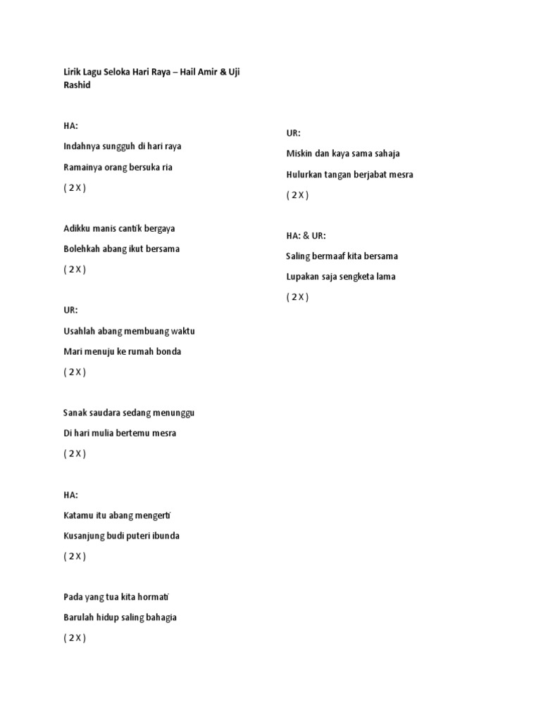 Lirik Lagu Satu Hari Di Hari Raya Englshayi
